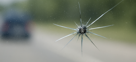 Ein Steinschlag entsteht, wenn ein hartes Objekt, meist ein Stein, mit hoher Geschwindigkeit auf die Windschutzscheibe trifft. Dadurch entsteht ein kleiner Krater, der je nach Aufprallkraft unterschiedliche Formen annehmen kann, z. B. Sternriss, Halbmondriss, Kombination oder Oberflächenabplatzung.